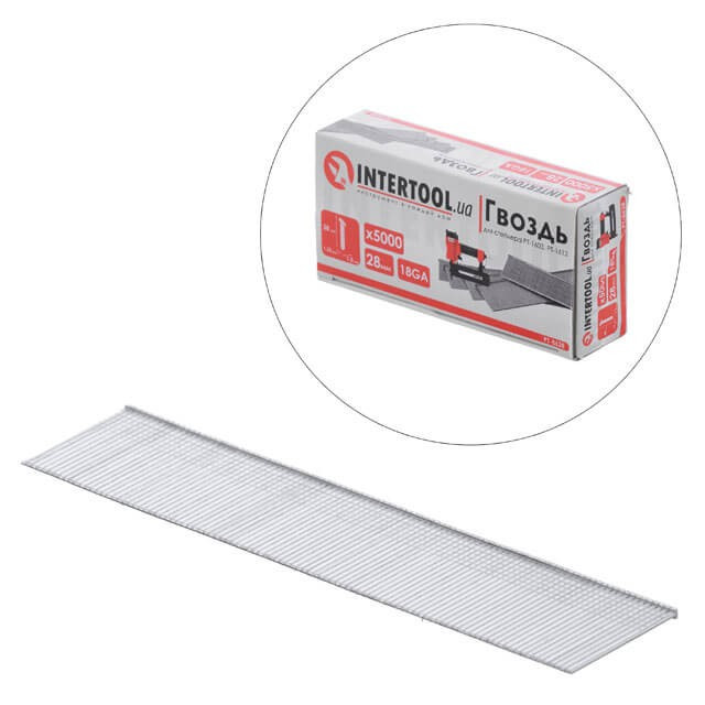 Цвях для степлера PT-1603, PT-1612, 28 мм (18GA), 1.0*1.25 мм, 5000 шт/уп. INTERTOOL PT-8628