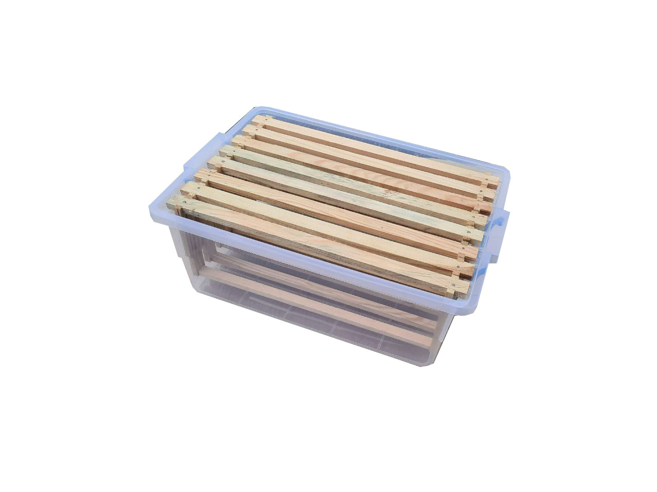 Контейнер для зберігання, транспортування та продажу медових рамок, а також може використовуватися для зручного зберігання та перенесення їжі. Контейнер виготовлений із якісного харчового пластику, абсолютно безпечного для здоров’я. Не містить шкідливих речовин. Кришка щільно закривається, додатково фіксується ручками.